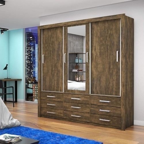 Guarda Roupa Casal com Espelho 3 Portas de Correr Anjos Carioca Móveis
